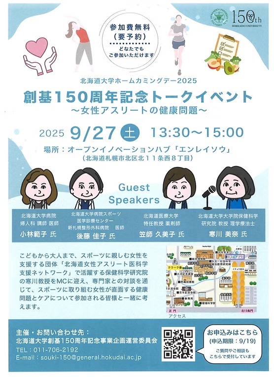 【テーマ】 スポーツに取り組む女性が直面する健康問題とケアについて、専門家が参加者と一緒に考えます。